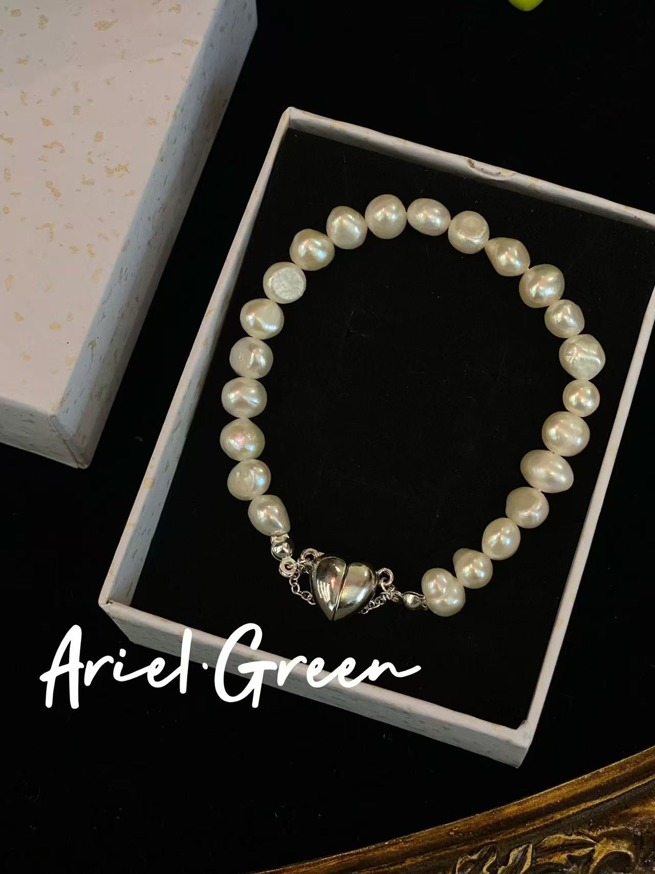 he Luna Heart Bracelet is a graceful union of purity and emotion. Each luminous, natural pearl reflects the calm beauty of the sea, while a delicate heart charm rests at its center — a quiet reminder of love, connection, and sincerity.