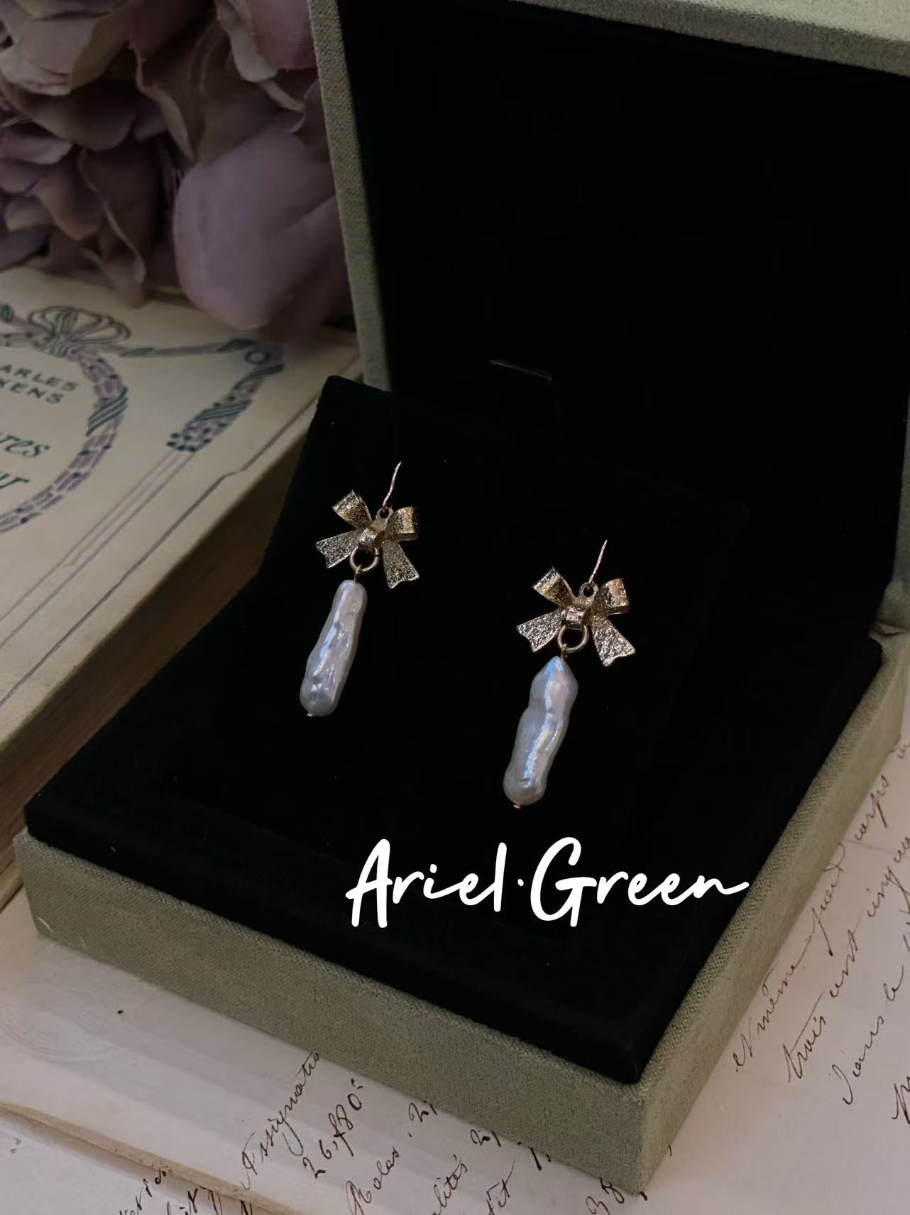 The Luna Solstice Earrings feature a long, flat freshwater pearl in a unique, flowing design that evokes the joy and sparkle of the holiday season. Their graceful silhouette catches the light with every movement, making them perfect for festive occasions or elevating any outfit with a touch of refined charm.